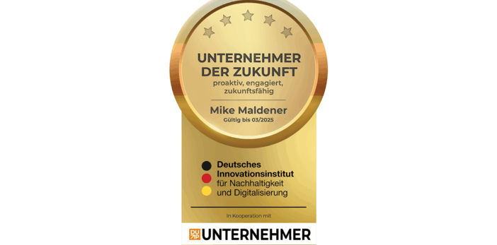 Das deutsche Innovationinstitut für Nachhaltigkeit und Digitalisierung hat mich als Unternehmer  der beiden Gesellschaften, BuS Beratung und Schulung  und MaldenerConsult & Vertrieb, als - Unternehmer der Zukunft - ausgezeichnet.